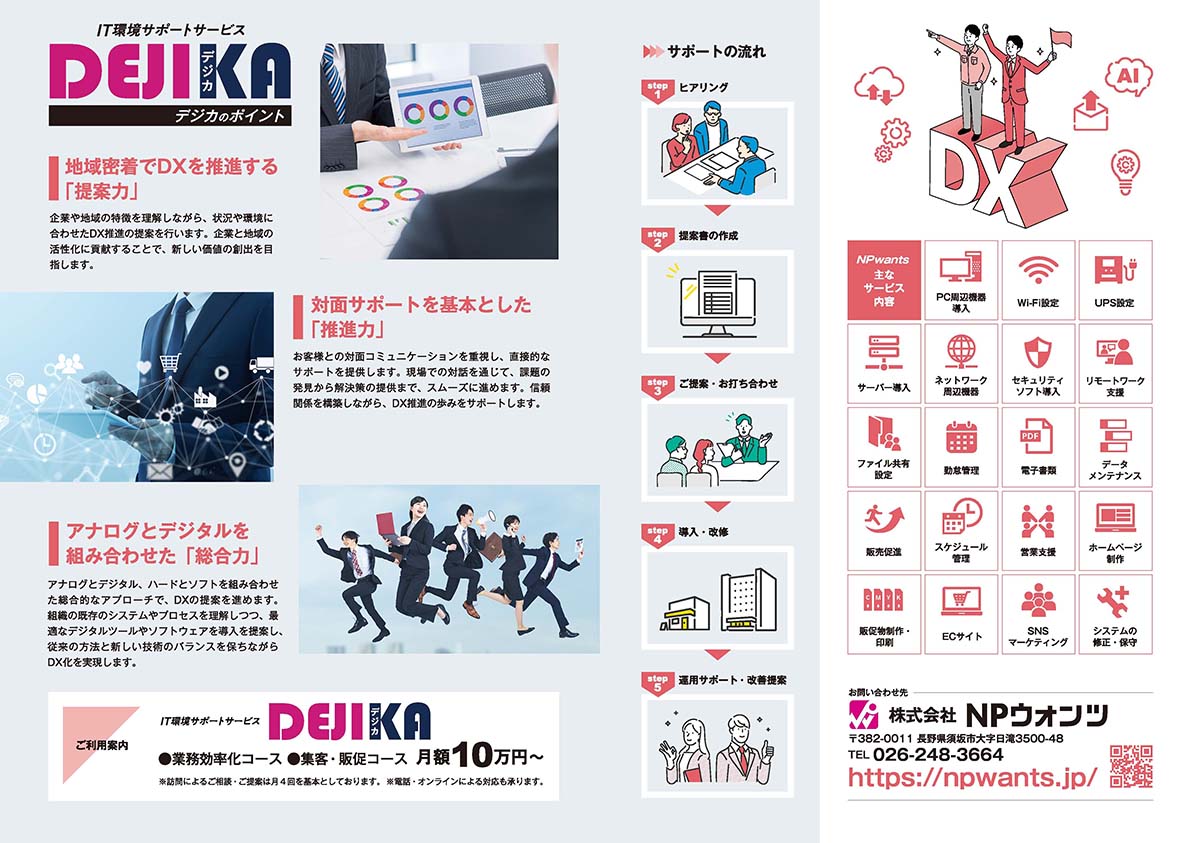 NPウォンツさんはデジタルとアナログ2つの事業を組み合わせたサービスを提供している会社です。DX化が主流となってきている世の中で、なかなかDXに踏み込めない企業も多いのではないでしょうか。そんな企業の味方です。デジタルに傾倒するのではなく、アナログの良さを知っているからこそのサービスを提供していただけます。何より、人と人とのつながりを大切にしている温かい会社です♨