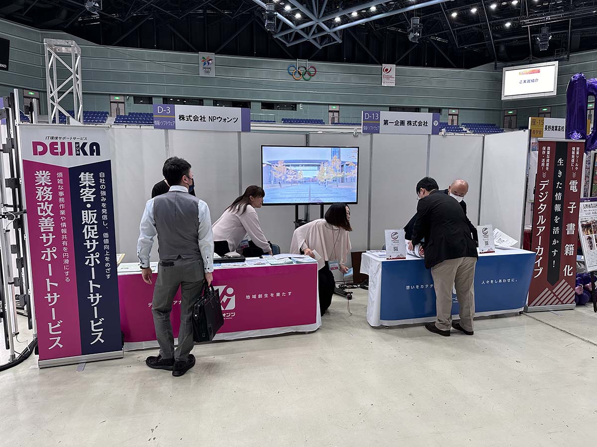 今回は参加するにあたって、提携会社である(株)NPウォンツさんの商材プロモーションを承りました。これから提供していきたいサービスを形にして、しんきんビジネスフェアで出展するというプランでした。