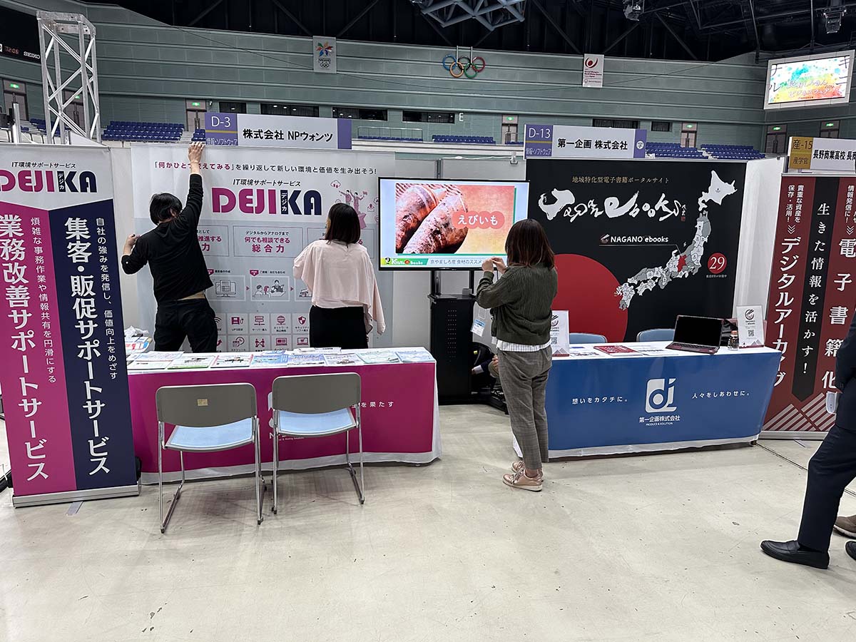 ブースには、縦長のスタンドバナーにebookの利点を2つ掲げ、バックバナーにはJAPAN ebooksのブランドロゴを配しました。