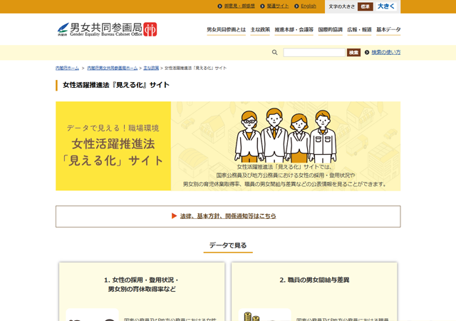 内閣府男女共同参画局 女性活躍推進法「見える化」サイト